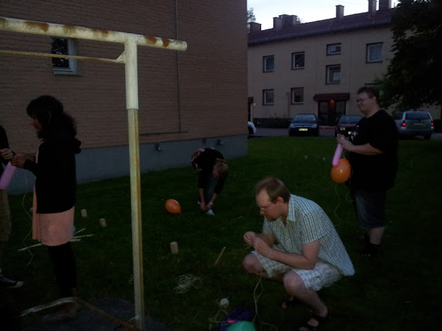 Så var det dags för korvfest! Men inte sådana som jag är van vid... Nej nu skulle korven vara fast i ett snöre...